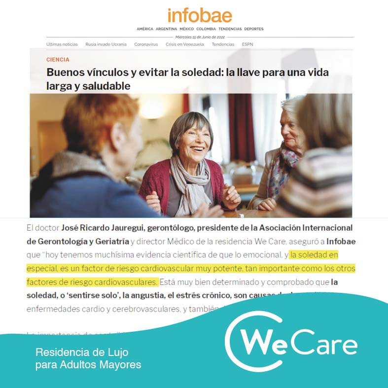 En el Día Mundial de Toma de Conciencia del Abuso y Maltrato en la Vejez, el diario Infobae dedicó un artículo al tema, e incluyó al Director Médico de We Care, doctor José Ricardo Jauregui, gerontólogo y presidente de la Asociación Internacional de Gerontología y Geriatría.